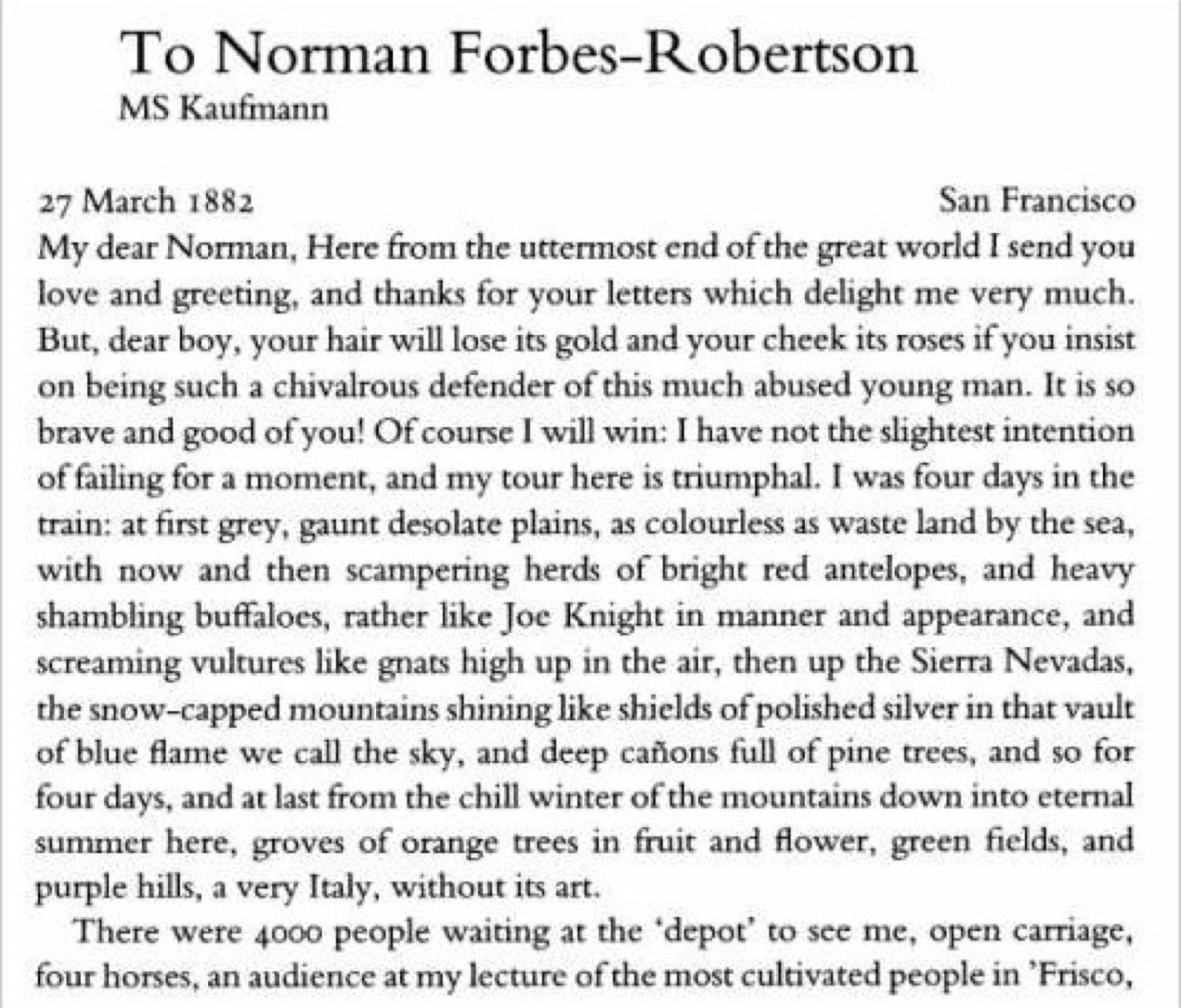WILDE WRITES FROM SAN FRANCISCO