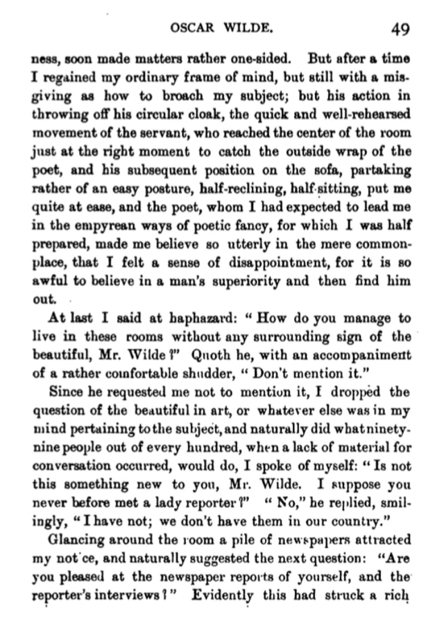 INTERVIEW WITH WILDE AT THE PALACE HOTEL