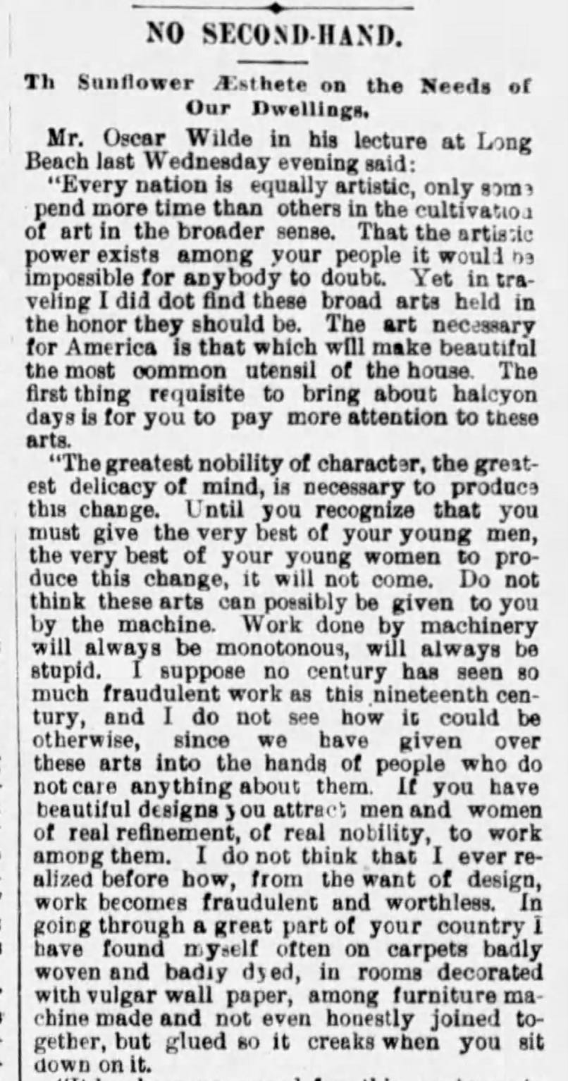 Given the one-day interruption to his Catskills itinerary, it seems likely that the Long Beach lecture was one of those prearranged when he vacationed at the resorts of New York, Rhode Island and New Jersey in July. For Wilde’s visit on that occasion see A Scene at Long Beach.