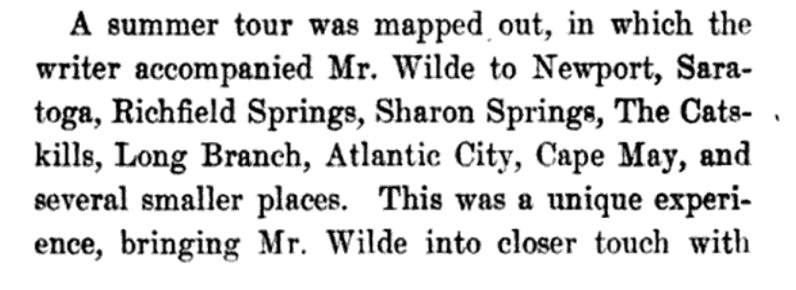 Many years later, Wilde’s tour manager, Colonel W. F. Morse recalled accompanying Wilde on a lecture in Atlantic City. [1]