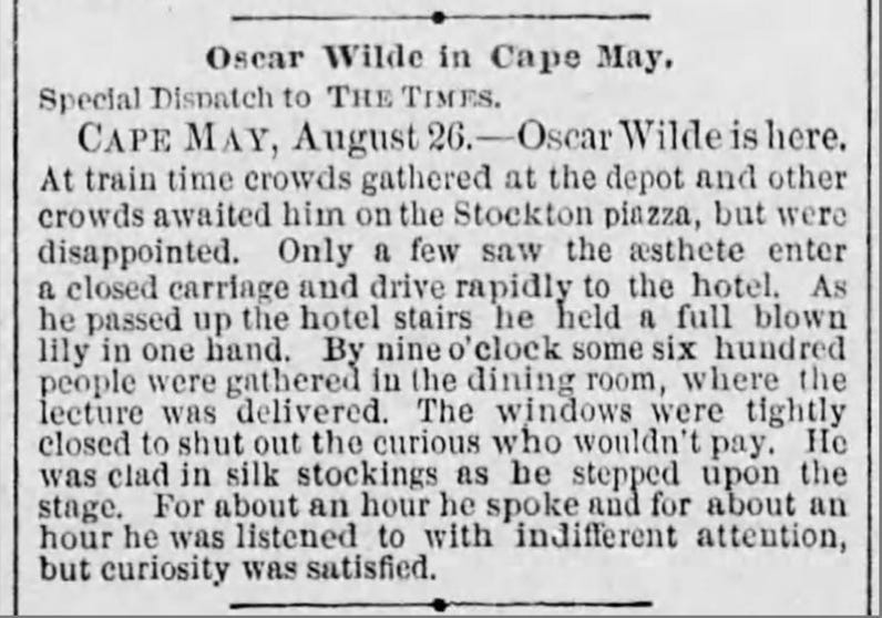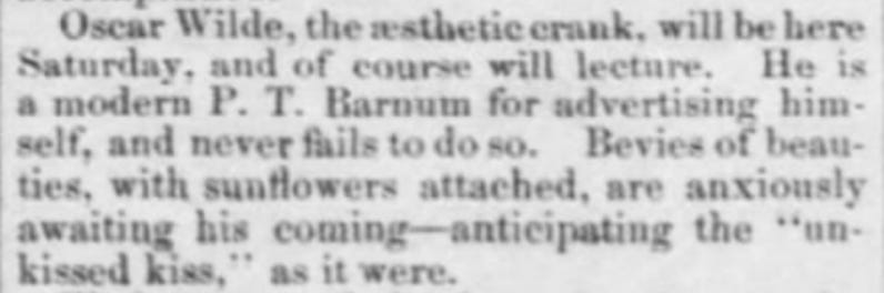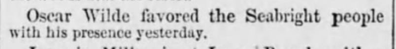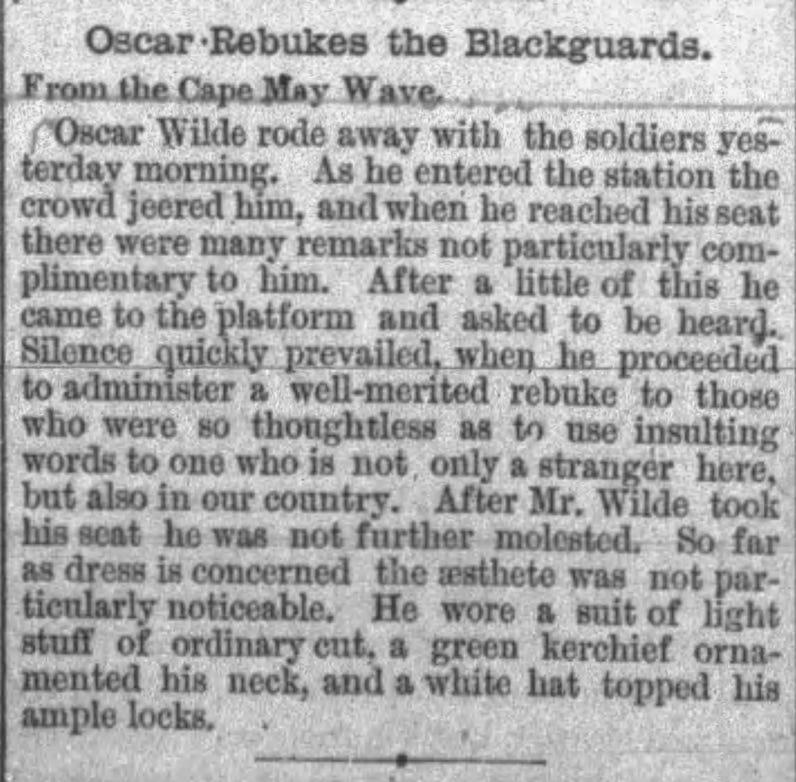 “Oscar Wilde recently lectured at Sea-bright, and according to the Sentinel, he was very dreary and uninteresting putting many of his audience to sleep.”