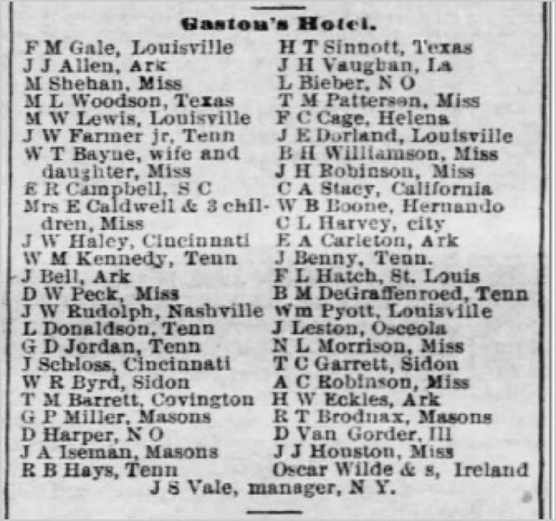 The theater at this location had various names including Crisp's Gaiety, Memphis Theatre, Leubrie's Theatre, and New Memphis Theatre. For a full chronology see Historic Memphis.