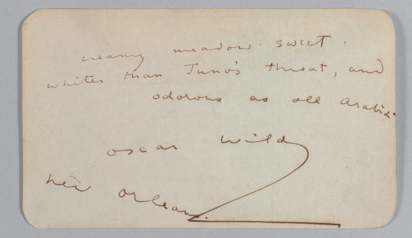 Two autograph manuscript verse fragments made by Wilde in New Orleans from his poem The Garden of Eros, signed:
