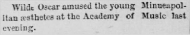 Oscar Wilde, “the apostle of beauty,” and the most talked about young man of the day, arrived in Minneapolis from Chicago yesterday afternoon and registered at the Nicollet.