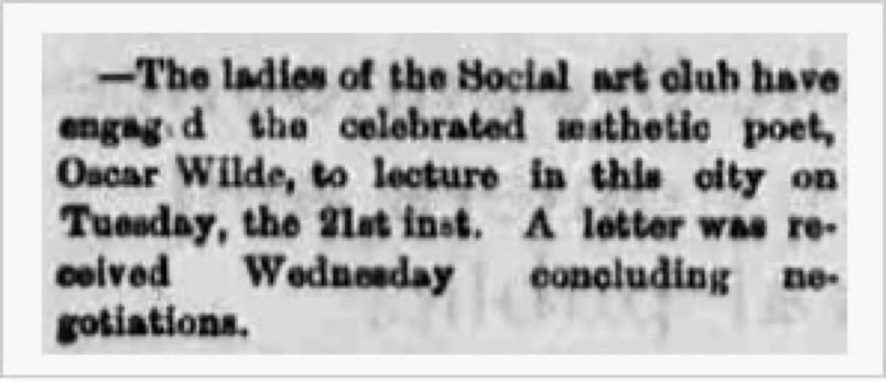 Wilde's lecture in Omaha was arranged under the auspices of the Social Art Club.