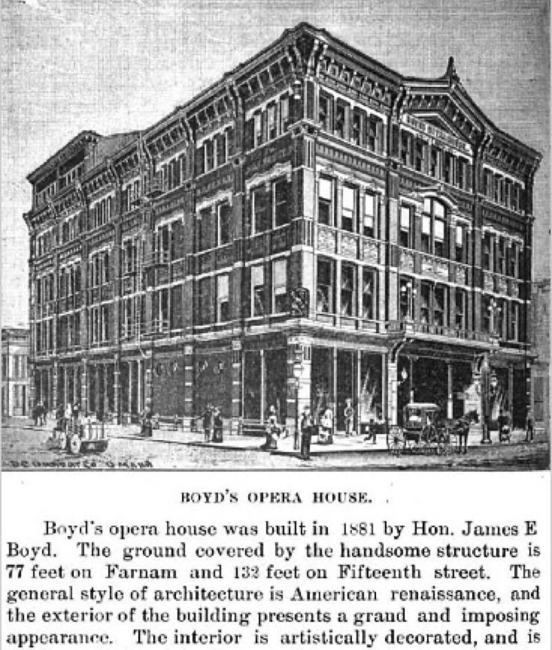Replaced in use: 1891 by the second Boyd's Opera House at 17th and Harney Streets (sold in 1914 to be used as retail space)