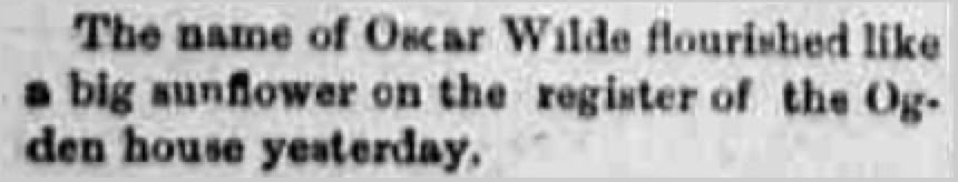 This clipping reports Wilde's name in the register at Odgen House, one of the the finest hotels in the region, not far from Omaha over the river at Council Bluffs.