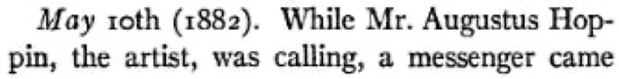 However, the contemporaneous journal entry by Leland (opposite) indicates that Wilde met Whitman again on May 10th. Leland's account is that Wilde, again lecturing in Philadelphia, had just returned from 'an hour at the feet' of Whitman.