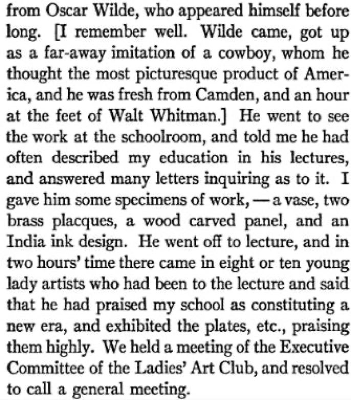 This latter reference to dress is an example of how Wilde was at this time was adding allusions to his subject matter that would eventually become a separate lecture (given in the UK and Ireland) and essay on the subject of Dress, a full history and exploration of which can be found in Oscar Wilde on Dress (John Cooper, 2013, 2025).