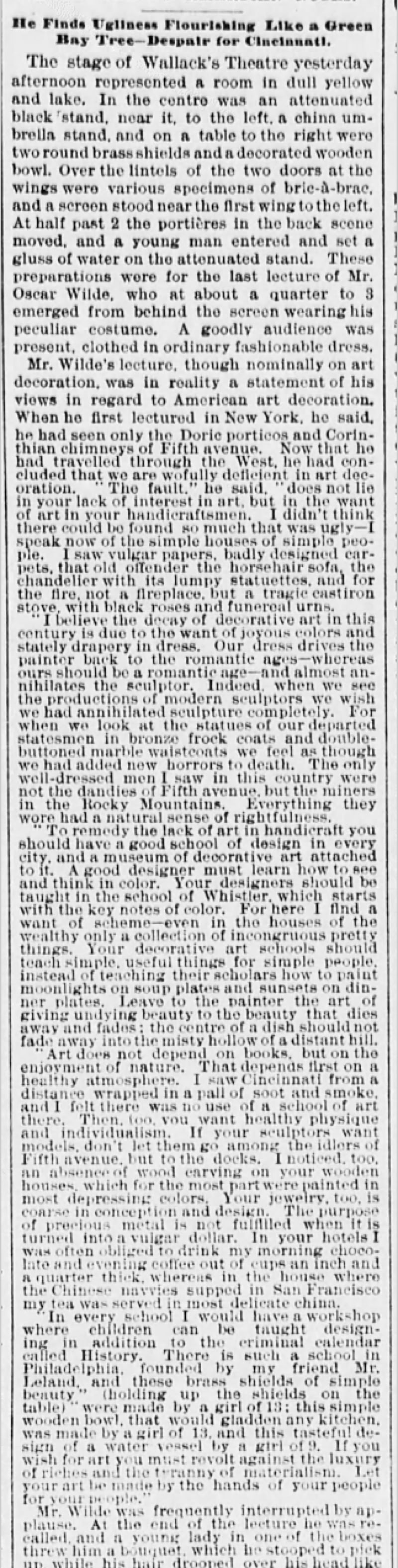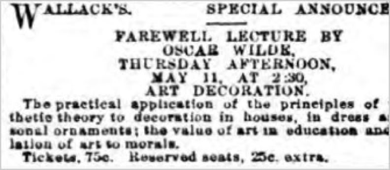 This was Oscar second of three lectures in New York City; the others were his first and his last lectures of the tour.
