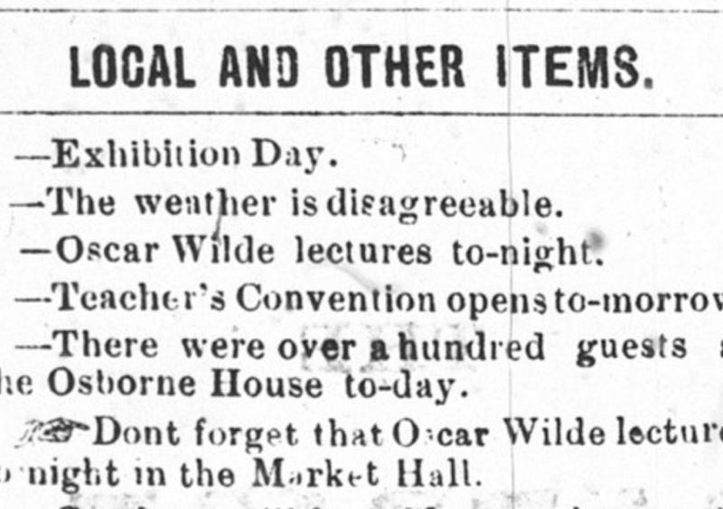 No record has been found of Wilde’s accommodation while in Charlottetown.