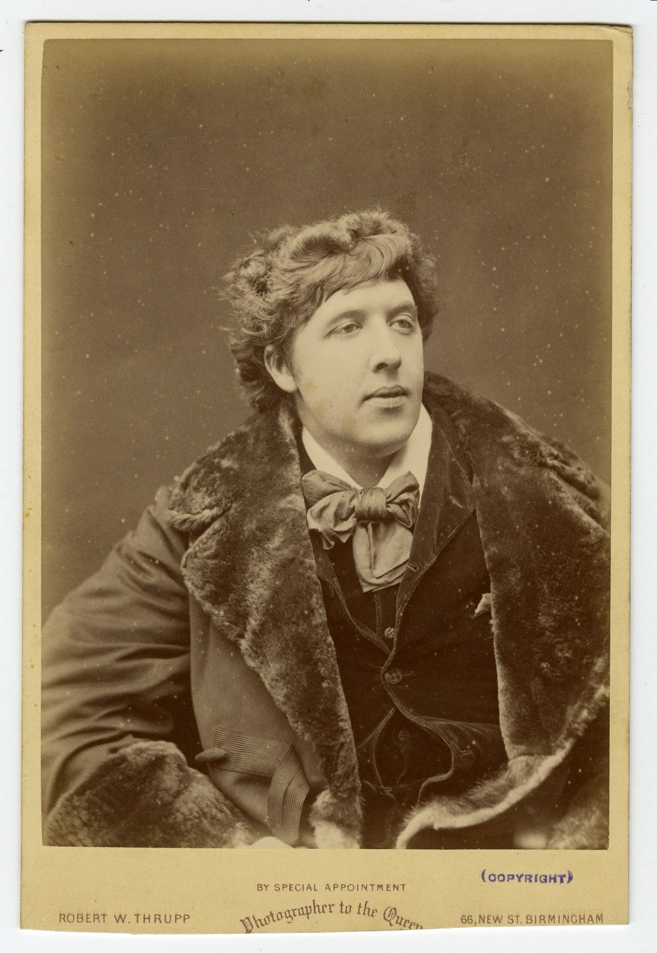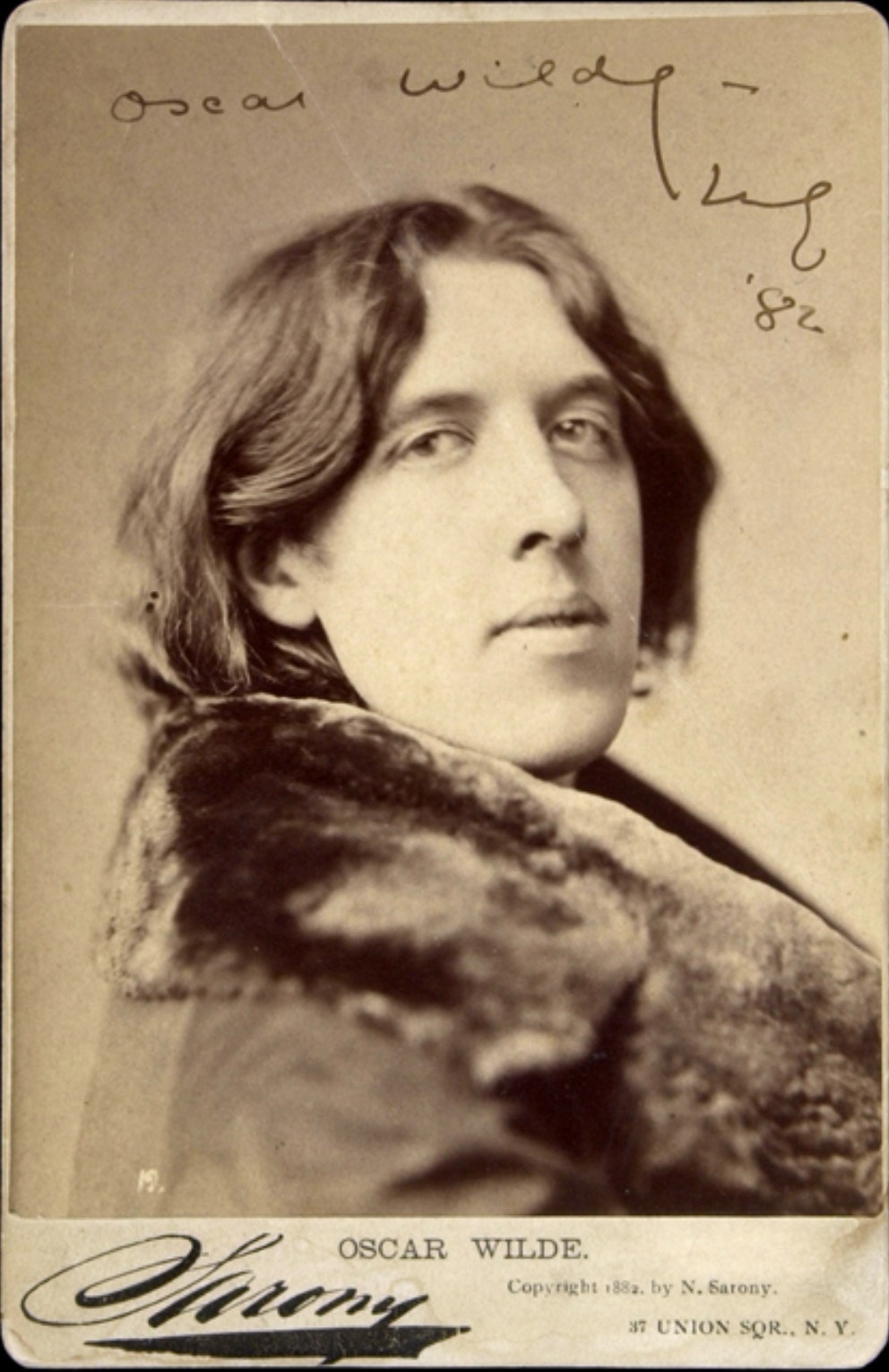 Wilde wrote to D’Oyly Carte in March 1882 to suggest a lithograph of him would help business: “The photograph of me with head looking over my shoulder would be the best - just the head and fur collar.”