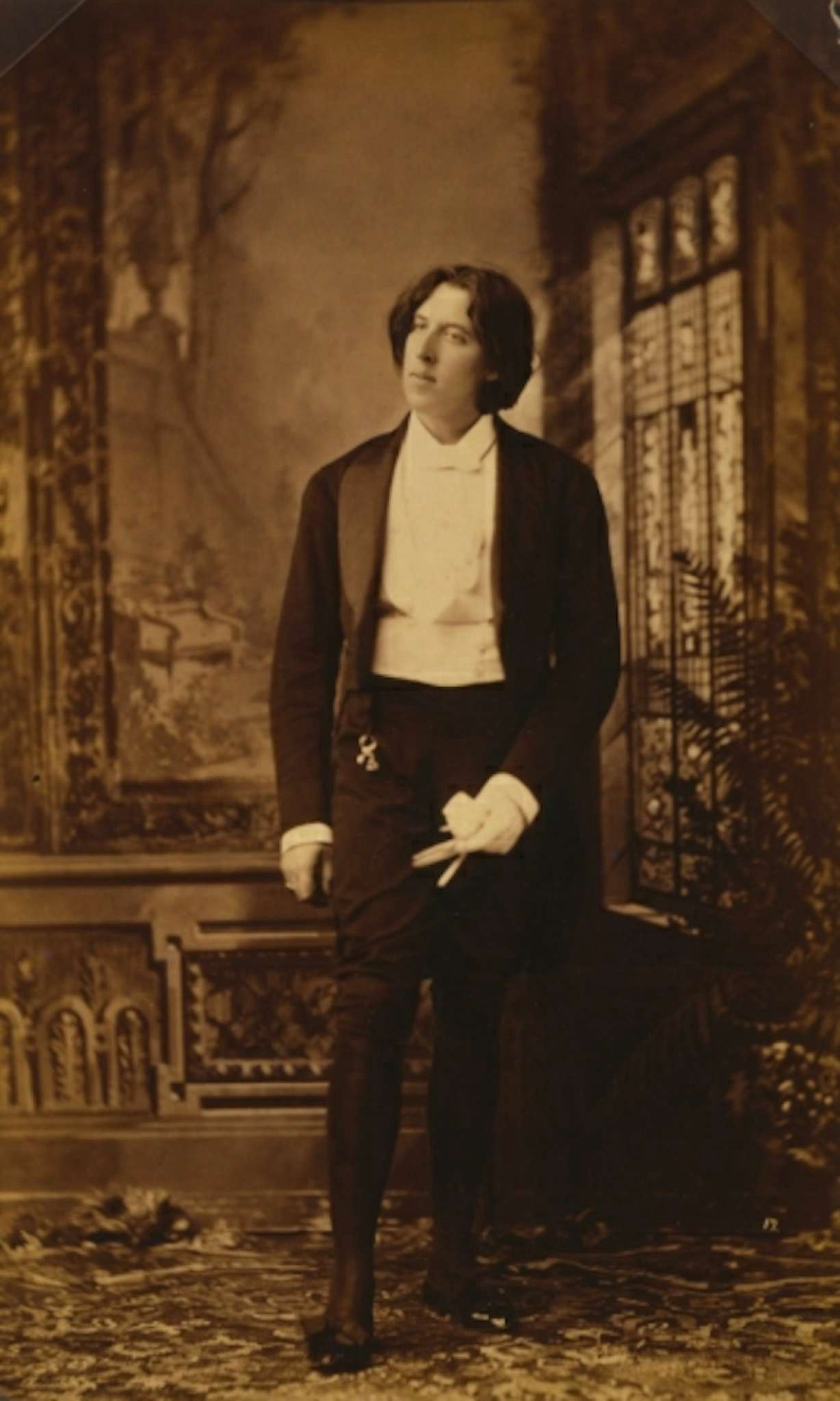 Oscar standing in exactly the same place in the Sarony’s studio in which Sarah Bernhardt had stood earlier in 1880, and Lillie Langtry later in 1882.