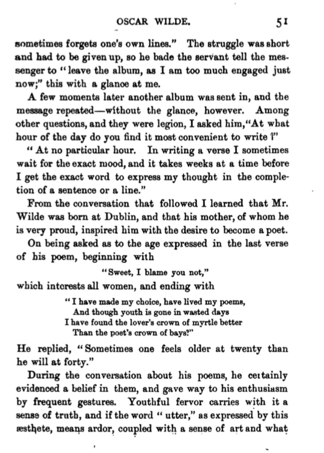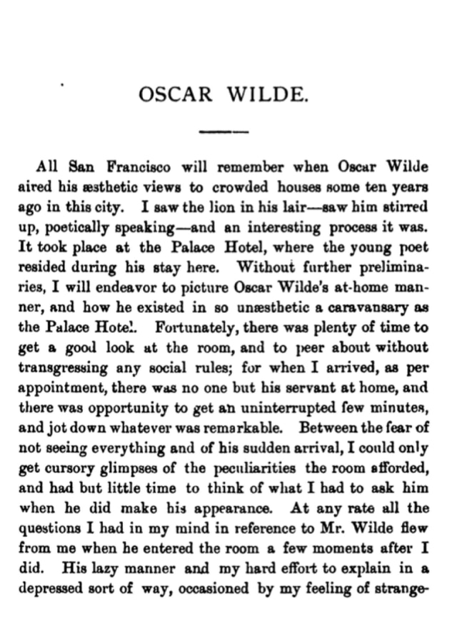 INTERVIEW WITH WILDE AT THE PALACE HOTEL