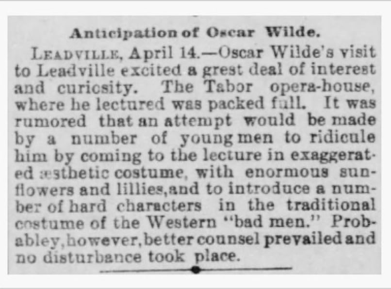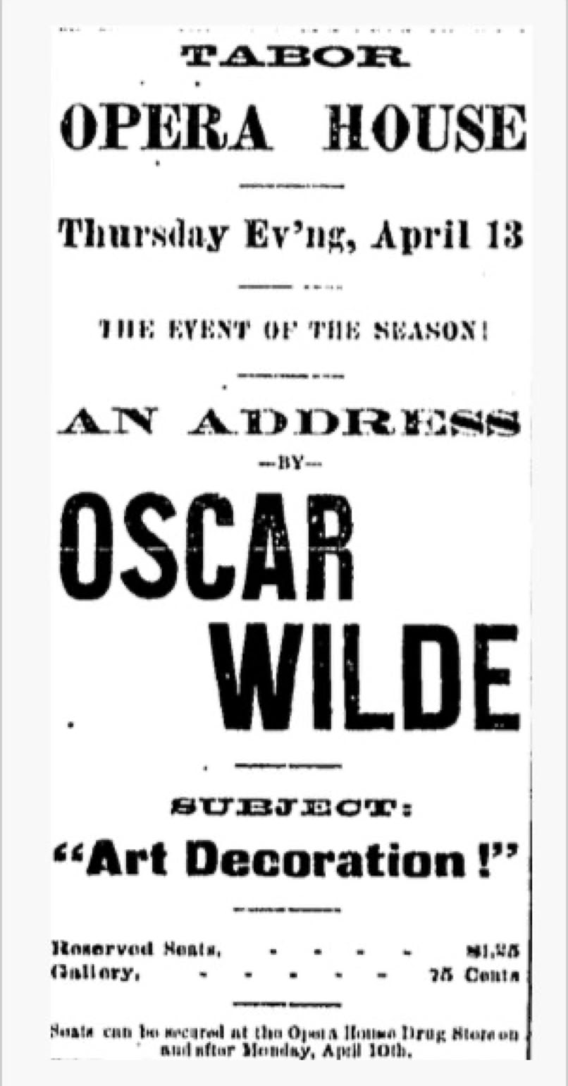 Wilde also appeared at the “Grand” Tabor Opera House on the previous evening when he lectured in Denver, CO.
