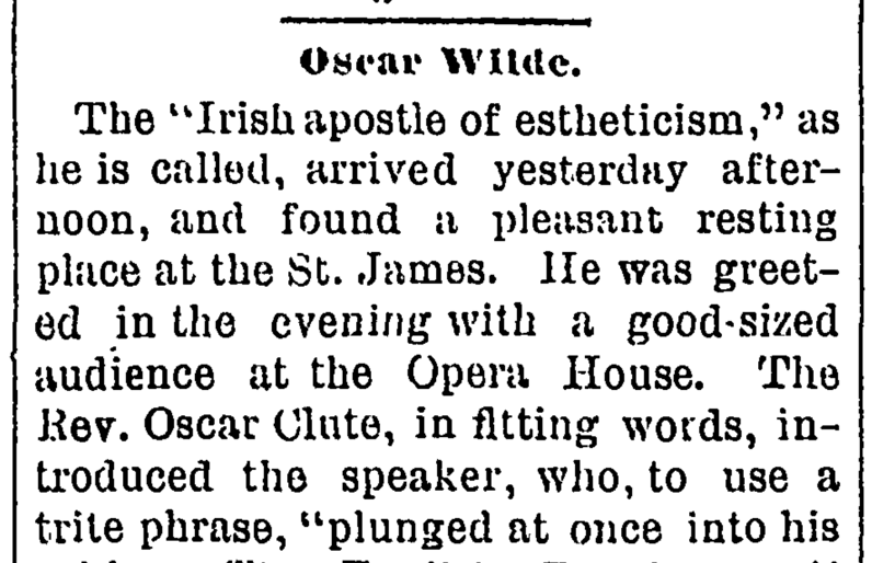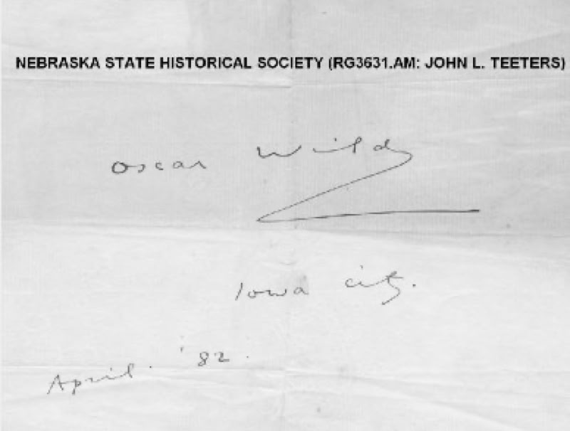 Oscar Wilde autograph from Iowa City, 1882