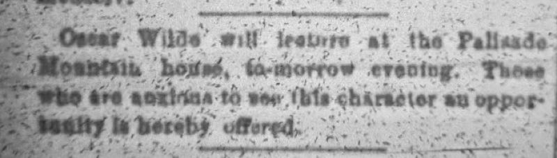 Ellmann notes a lecture at Palisades Mountain House and may have read the same misleading reports. Ellmann also has the location wrong; Palisades Mountain House was at Englewood, NJ, on the Hudson River, and would have required a day trip from where Wilde was lecturing on the Jersey shore.