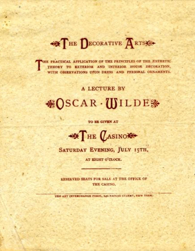 Wilde gave this talk at the start of a Summer vacation and he did not lecture again for two weeks.