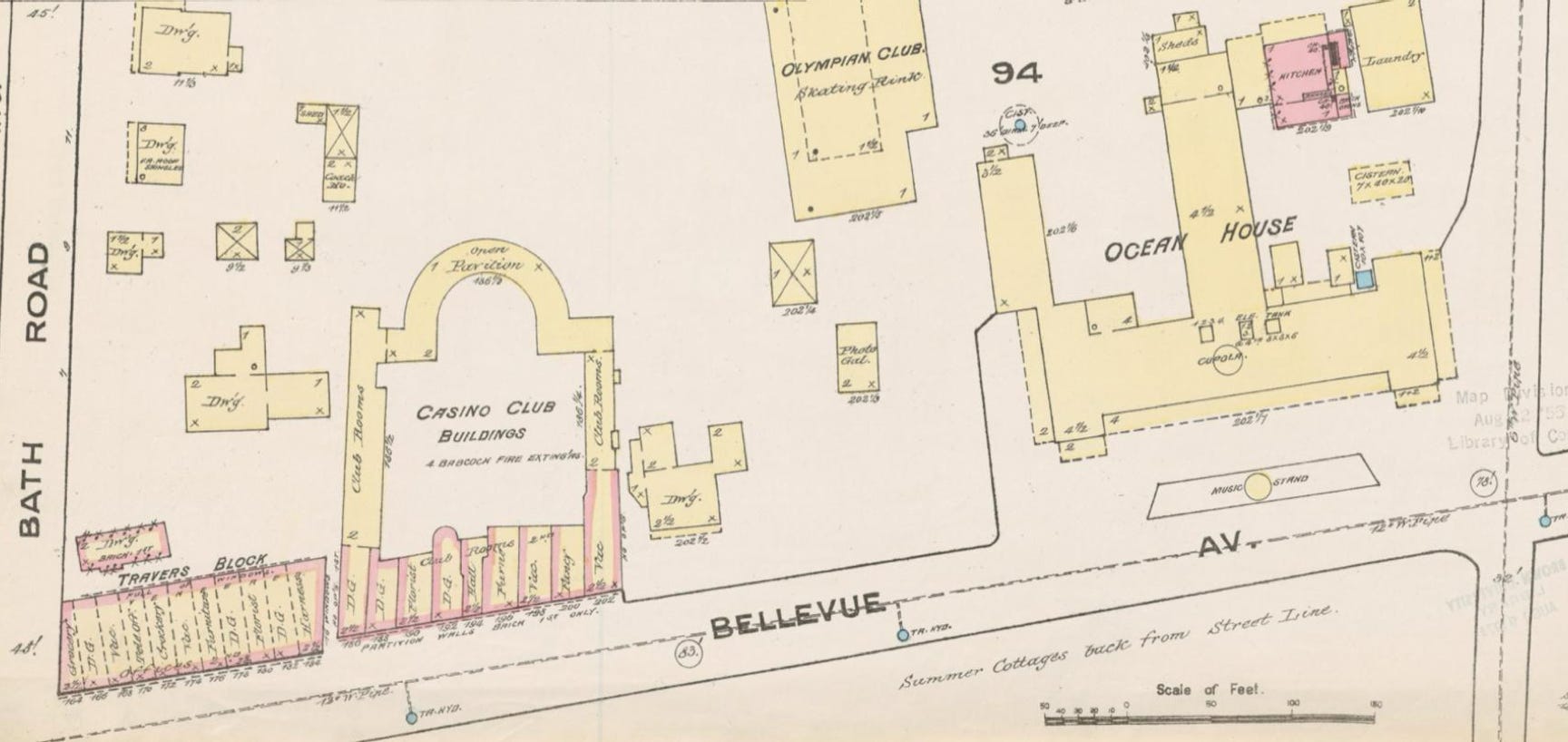 * The second hotel of this name in Newport. The first (1841-45) was destroyed by fire. Neither hotel to be confused with the extant 1868 Ocean House at Bluff Ave, Westerly, RI 02891.