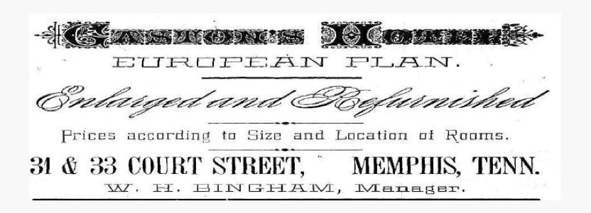 The theater at this location had various names including Crisp's Gaiety, Memphis Theatre, Leubrie's Theatre, and New Memphis Theatre. For a full chronology see Historic Memphis.