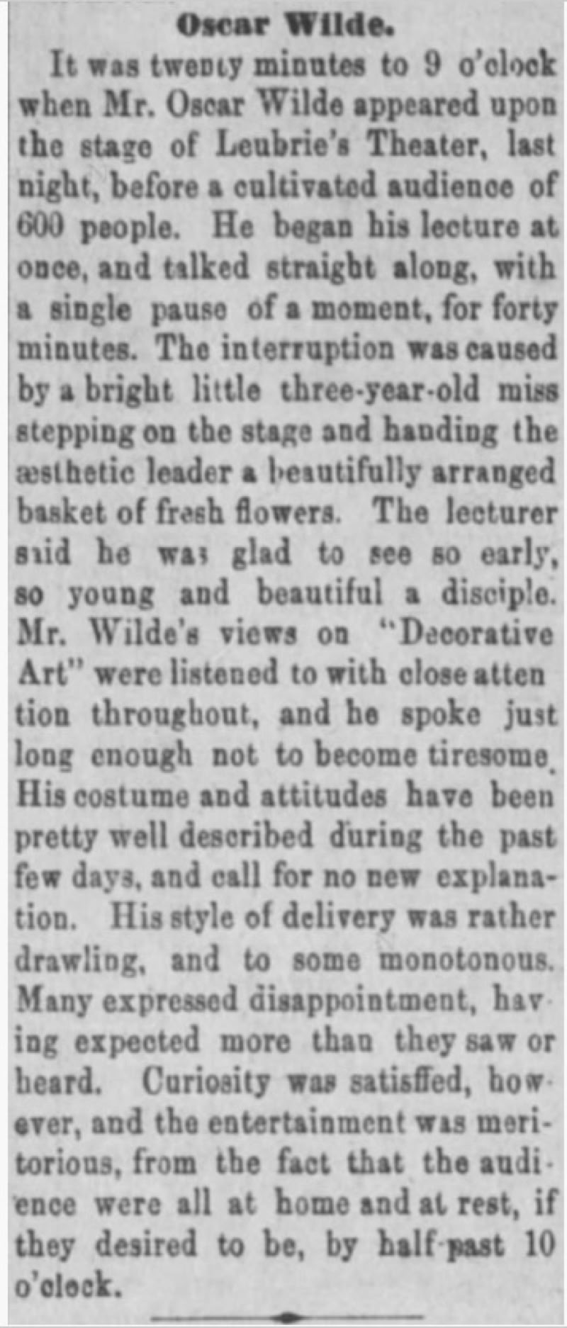 Wilde, servant and manager listed at bottom.