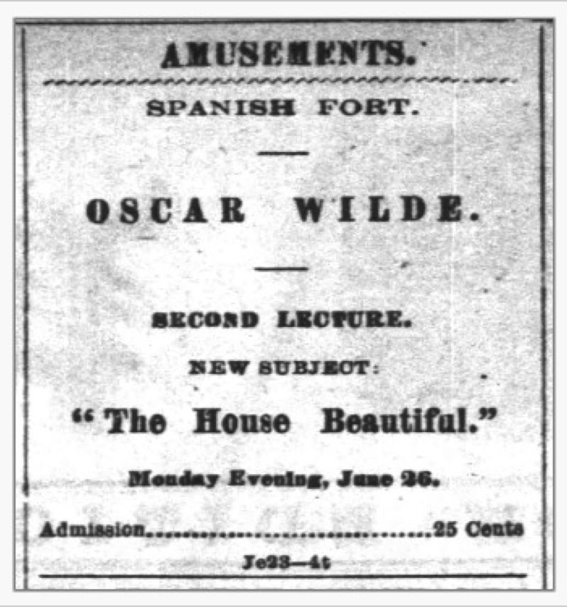 Wilde did not stay three days at Spanish Fort as stated. He departed the following day for Mobile where lectured on June 28.