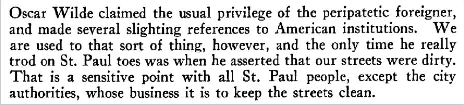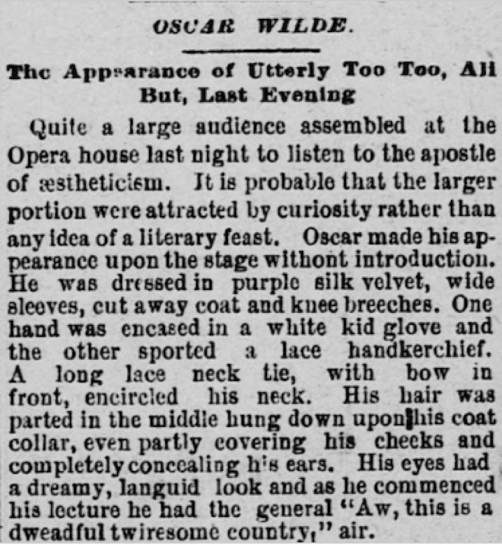 Wilde spoke for a second time at the Opera House the following evening, March 17, on the occasion of St. Patrick's Day. Not regarded as a formal lecture.