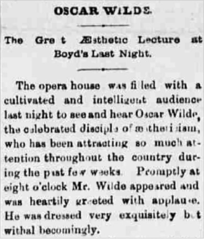 Wilde's lecture in Omaha was arranged under the auspices of the Social Art Club.