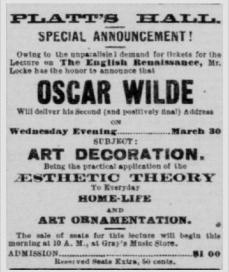 The notice says this lecture would ‘positively’ be Wilde's last in San Francisco. In fact, there were two more.