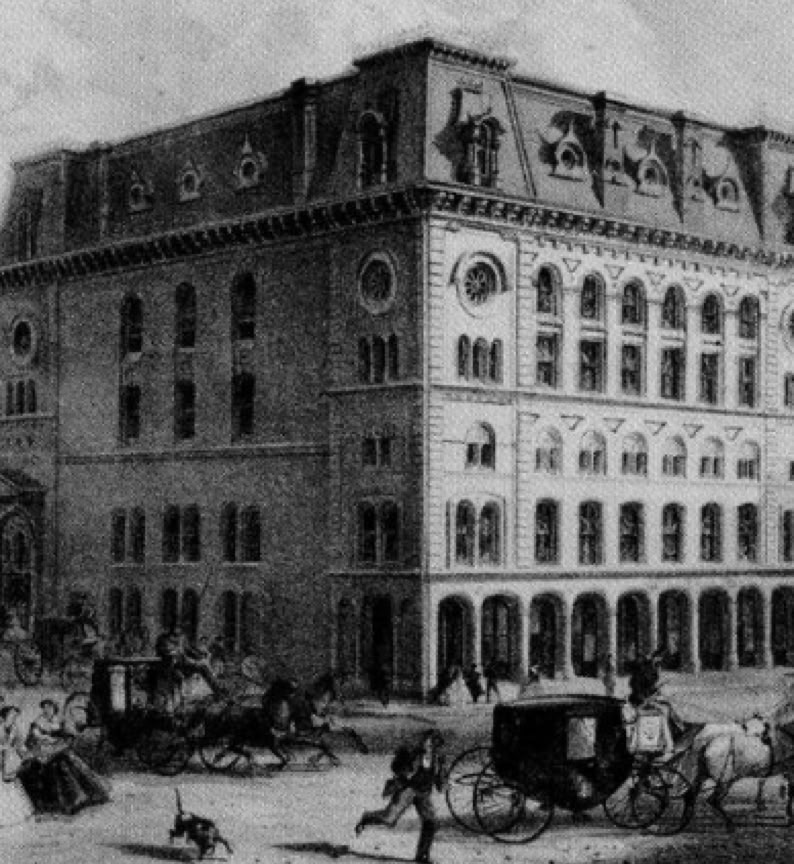 Premises: when the six-story Turner Opera House (1866) was destroyed by fire on May 16, 1869, a three-story edifice was rebuilt incorporating only a part the surviving facade of its predecessor; it resumed operations as the Music Hall