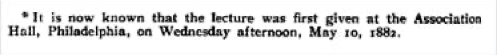 Essays and Lectures by Oscar Wilde, London: Methuen and Co., 1908, noted in reference to this lecture: "The earliest date on which it is known to have been given is May 11, 1882".