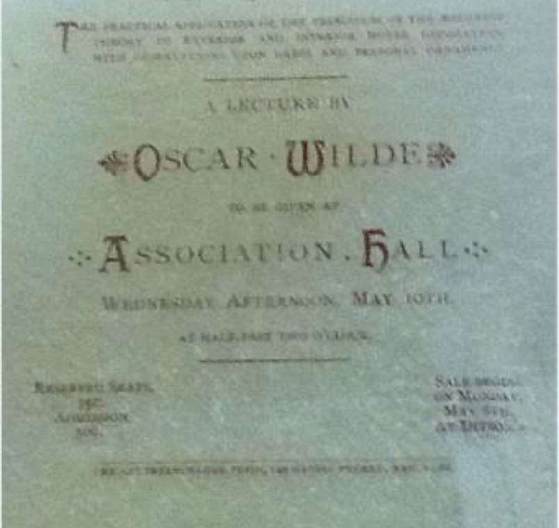 The 'Association' in question was the Young Men's Christian Association (YMCA). See also Wilde's lecture to the YMCA in New York.