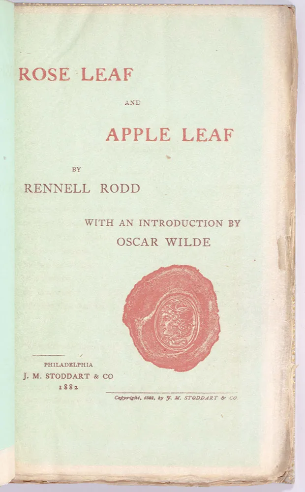 Wilde reuses the signet ring as artistic emblem on the title page of Rose Leaf and Apple Leaf, a book he had produced for his Rennell Road. Barbara Belford describes it as “the profile of a young boy in ringlets”.