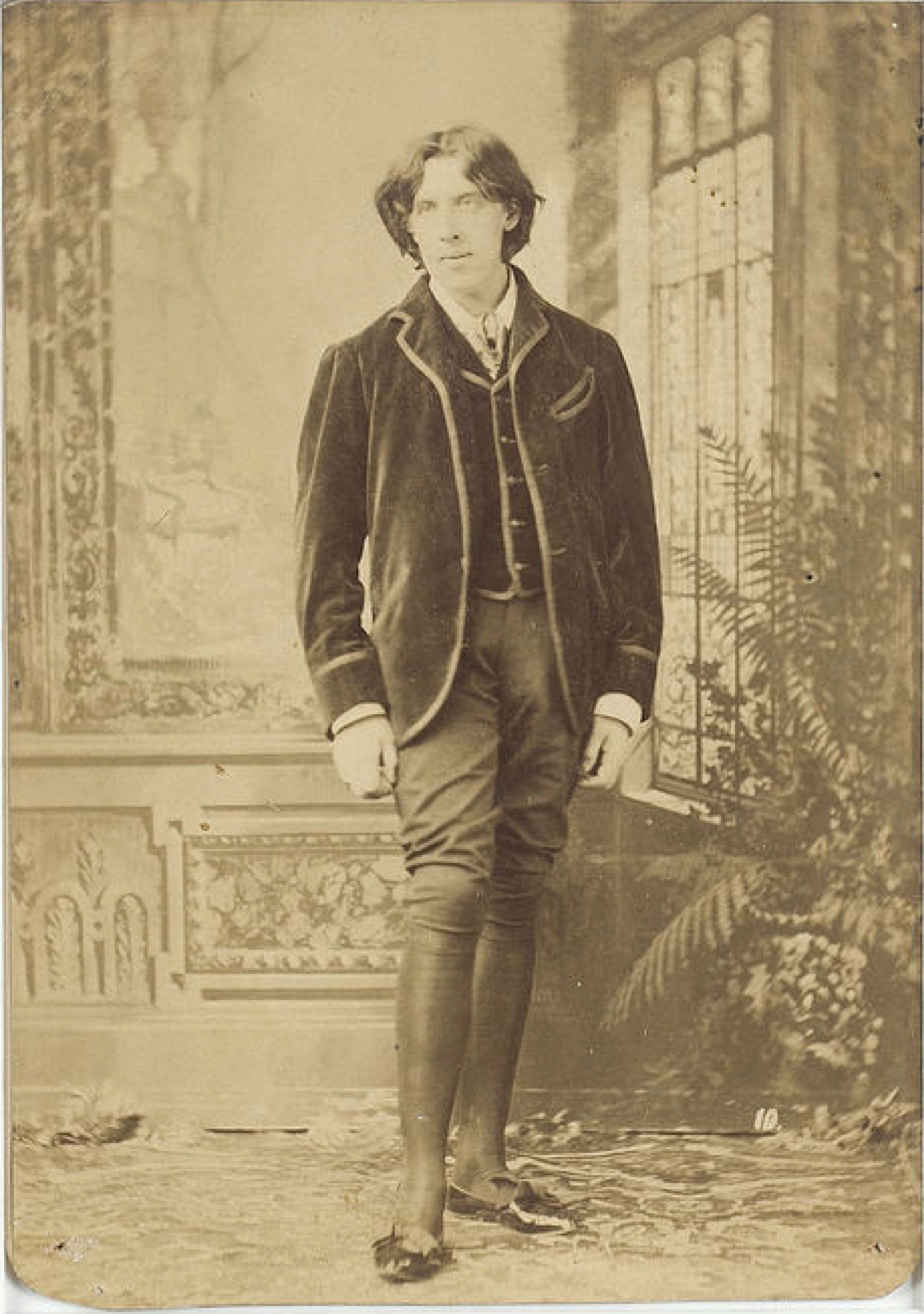 Oscar standing in exactly the same place in the Sarony’s studio in which Sarah Bernhardt had stood earlier in 1880, and Lillie Langtry later in 1882.